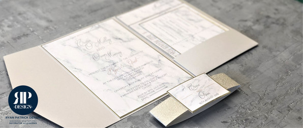 A stunning customised pale silver pearlised pocketfold, with marble styled inserts! all trimmed in stunning reflective sunny gold metallic card... and then the whole package wrapped in a neat non shed glitter band! so so in love with this one!! . . . . . Want us to tell your love story in style... then get in touch! 📸https://www.instagram.com/r_p_design/ 🥰SC: ryanpatrickd 💻www.ryanpatrickdesign.co.uk